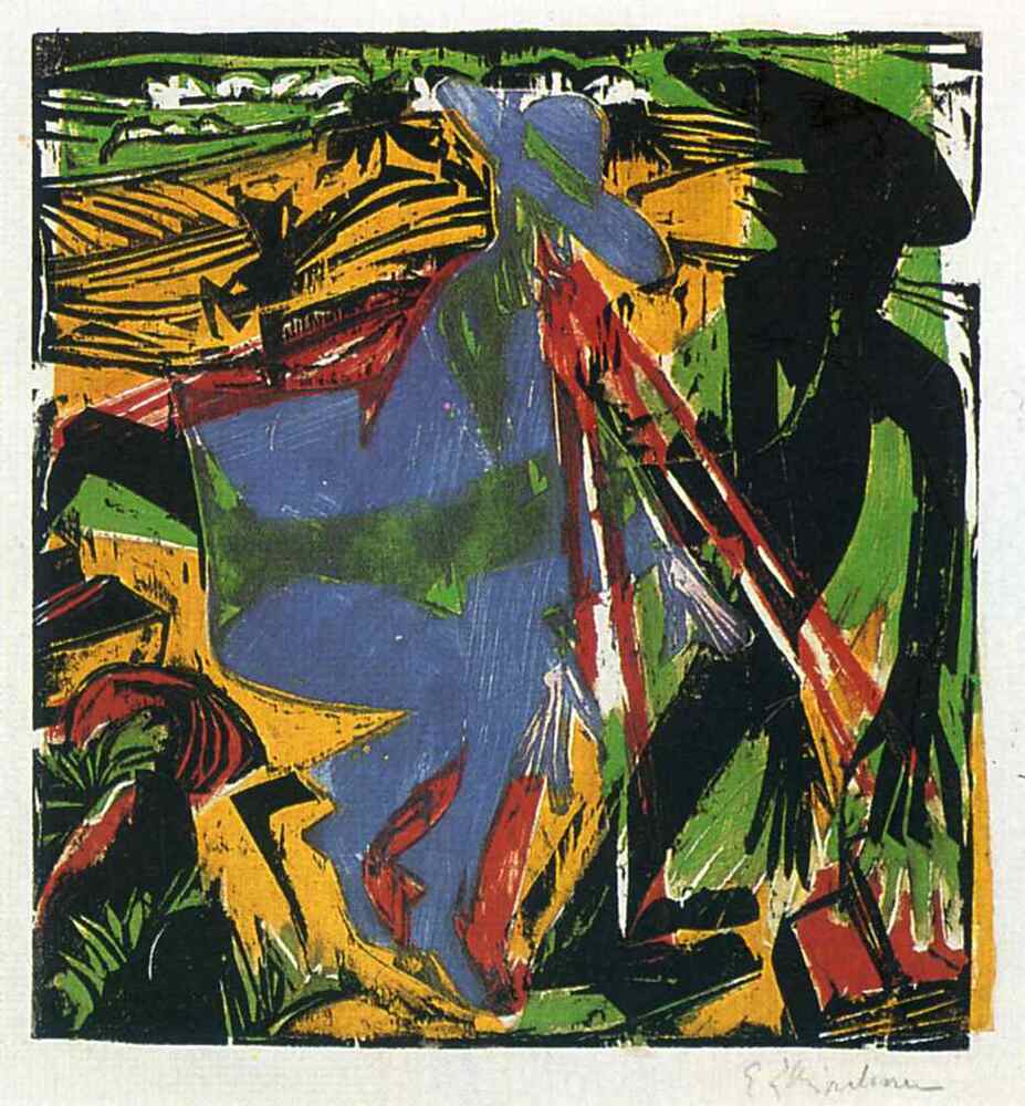 Ti offriamo una riproduzione artigianale su tela dell'opera famosa 'Schlemihls Entcounter con l'Ombra' di Ernst Ludwig Kirchner, dal Museo delle Riproduzioni.