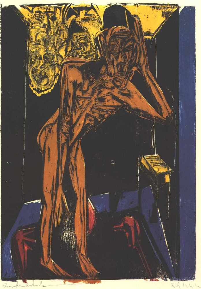 Ti offriamo una riproduzione artigianale su tela dell'opera famosa 'Schlemihls nella solitudine della camera' di Ernst Ludwig Kirchner, dal Museo delle Riproduzioni.