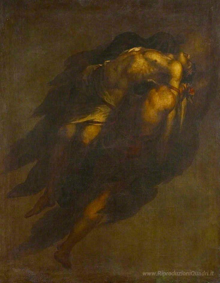 Ti offriamo una riproduzione artigianale su tela dell'opera famosa 'The Dead Sarpedonte, A carico sonno e la morte (da Omero 'L'Ilia' di David Scott, dal Museo delle Riproduzioni.