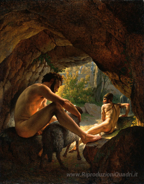 Ti offriamo una riproduzione artigianale su tela dell'opera famosa 'Ulisse in fuga La grotta di Polifemo' di Christoffer Wilhelm Eckersberg, dal Museo delle Riproduzioni.