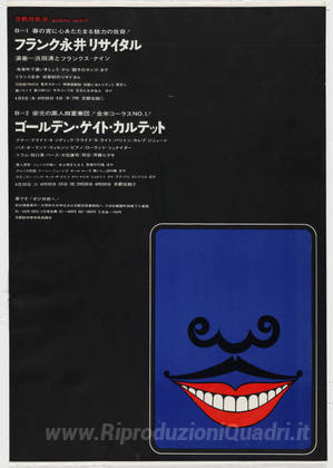 Ti offriamo una riproduzione artigianale su tela dell'opera famosa 'Bocca sorridente con i baffi, il considerando a Kyoto Festival H' di Tadanori Yokoo, dal Museo delle Riproduzioni.