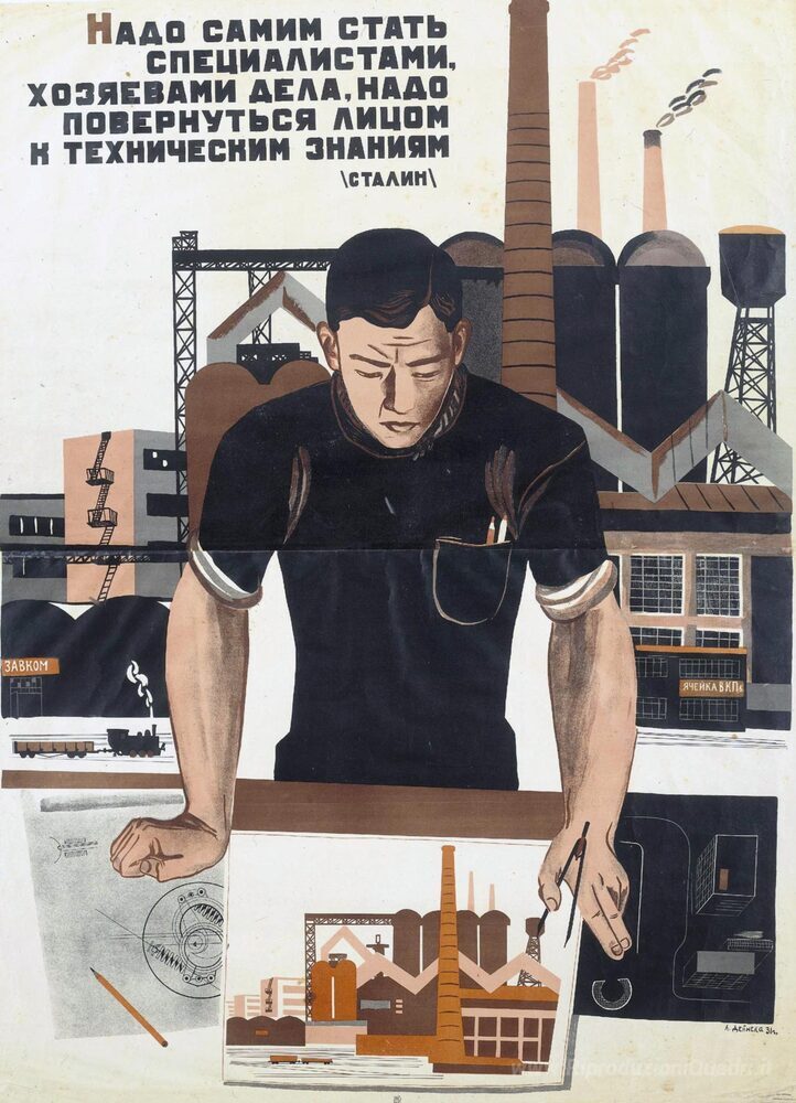 Ti offriamo una riproduzione artigianale su tela dell'opera famosa 'Dobbiamo diventare specialisti' di Aleksandr Deyneka, dal Museo delle Riproduzioni.