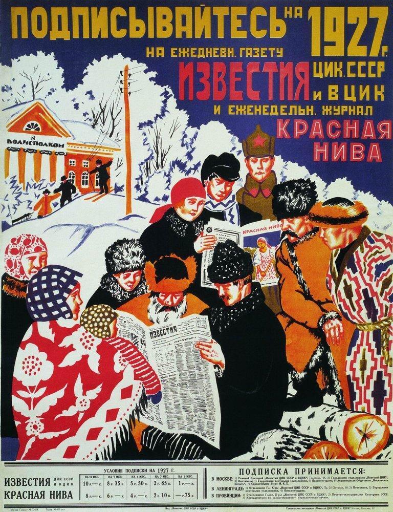Ti offriamo una riproduzione artigianale su tela dell'opera famosa 'Iscriviti al 1927 il quotidiano Izvestia URSS Comitato Esecutivo' di Boris Kustodiev, dal Museo delle Riproduzioni.
