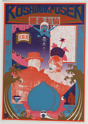 Ti offriamo una riproduzione artigianale su tela dell'opera famosa 'Koshimake Osen 2, Incendio in una kimono a maniche lunghe' di Tadanori Yokoo, dal Museo delle Riproduzioni.