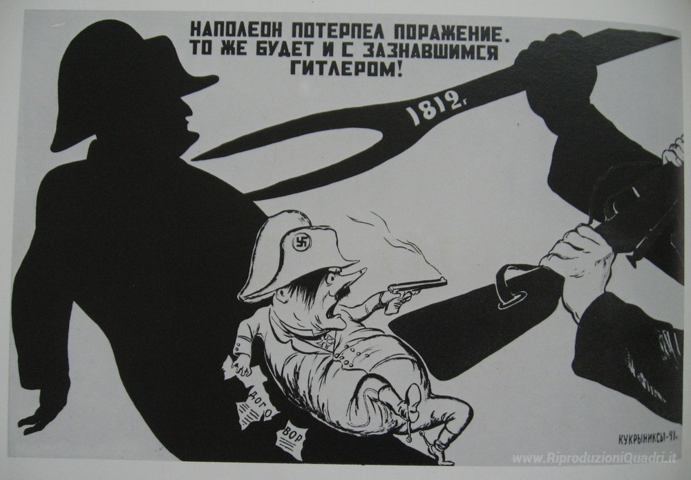 Ti offriamo una riproduzione artigianale su tela dell'opera famosa 'Napoleone è stato sconfitto, così sarà la arrogante Hitler!' di Kukryniksy, dal Museo delle Riproduzioni.