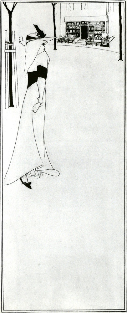 Ti offriamo una riproduzione artigianale su tela dell'opera famosa 'Poster di Ragazza e un Bookshop' di Aubrey Beardsley, dal Museo delle Riproduzioni.