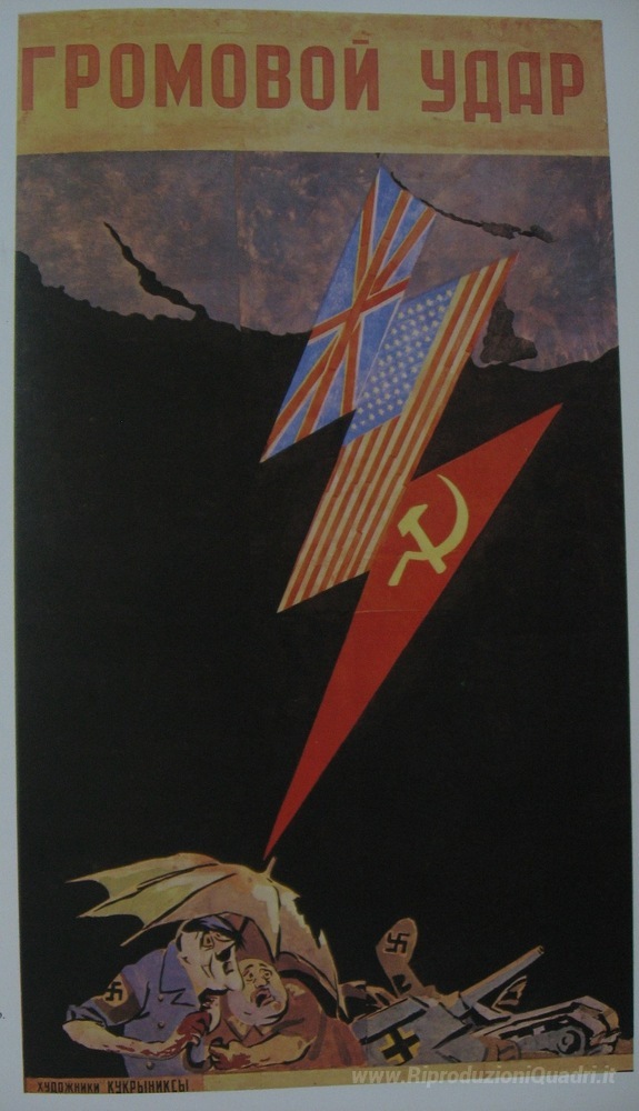 Ti offriamo una riproduzione artigianale su tela dell'opera famosa 'Sciopero Thunder' di Kukryniksy, dal Museo delle Riproduzioni.