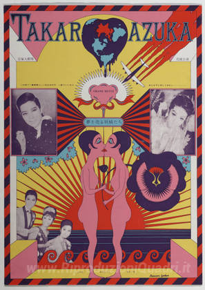 Ti offriamo una riproduzione artigianale su tela dell'opera famosa 'Takarazuka, Grande Revue' di Tadanori Yokoo, dal Museo delle Riproduzioni.