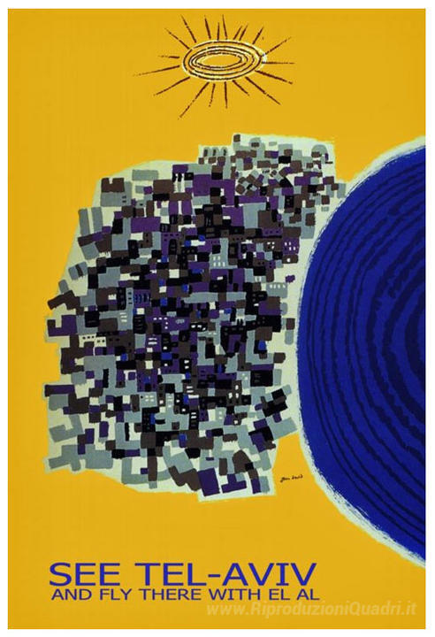 Ti offriamo una riproduzione artigianale su tela dell'opera famosa 'Vedi Tel Aviv' di Jean David, dal Museo delle Riproduzioni.