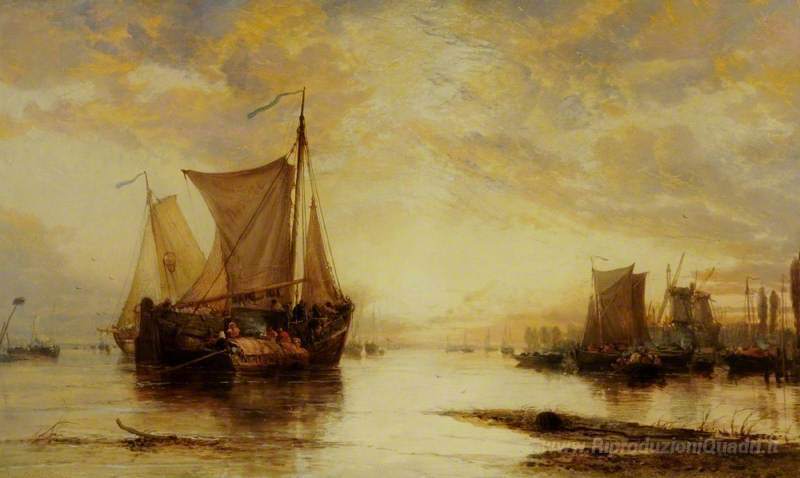 Ti offriamo una riproduzione artigianale su tela dell'opera famosa 'A Dordrecht, Olanda' di James Webb , dal Museo delle Riproduzioni.