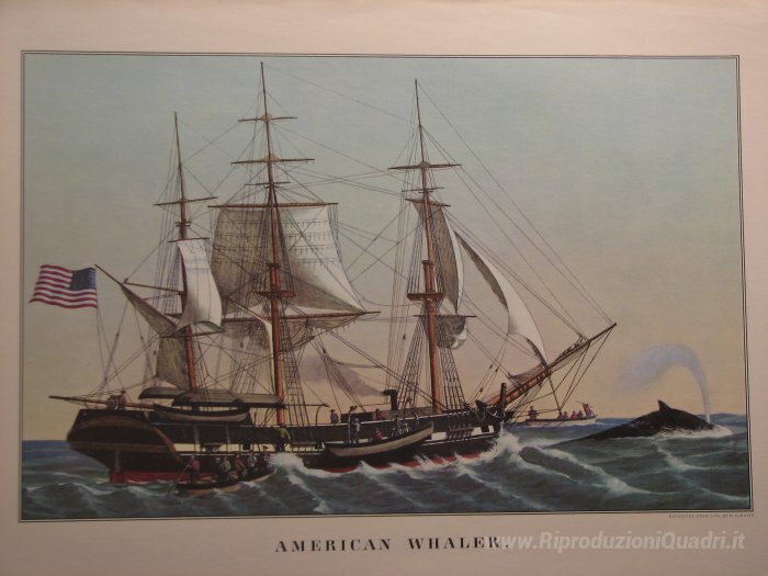 Ti offriamo una riproduzione artigianale su tela dell'opera famosa 'Americana Whaler' di Currier and Ives, dal Museo delle Riproduzioni.