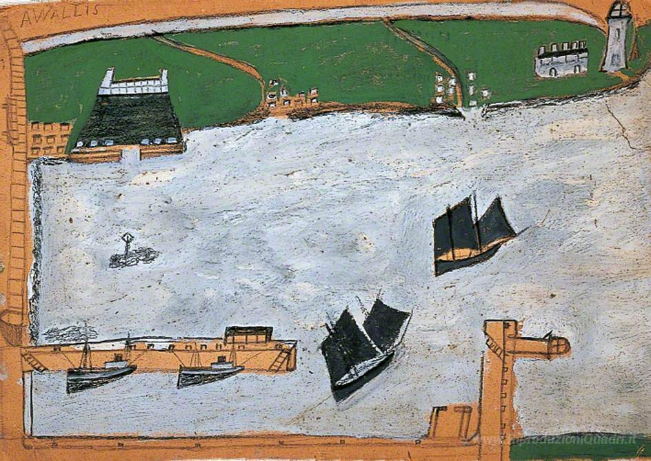 Ti offriamo una riproduzione artigianale su tela dell'opera famosa 'Baia del Monte con Monte San Michele, Cornovaglia' di Alfred Wallis, dal Museo delle Riproduzioni.