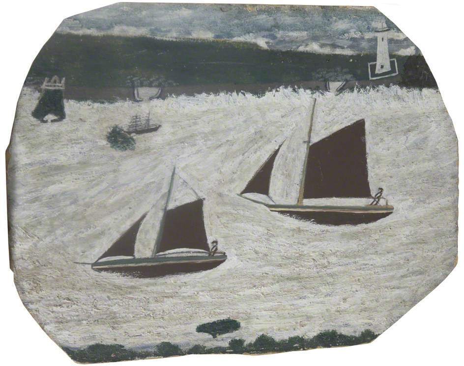 Ti offriamo una riproduzione artigianale su tela dell'opera famosa 'Baia del Monte' di Alfred Wallis, dal Museo delle Riproduzioni.