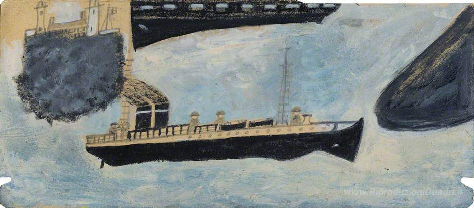 Ti offriamo una riproduzione artigianale su tela dell'opera famosa 'Barca a Motore con quattro uomini' di Alfred Wallis, dal Museo delle Riproduzioni.