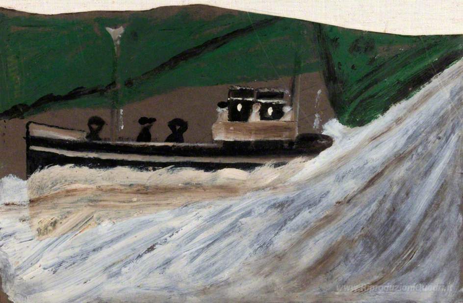 Ti offriamo una riproduzione artigianale su tela dell'opera famosa 'Barca con figure' di Alfred Wallis, dal Museo delle Riproduzioni.