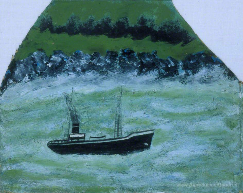 Ti offriamo una riproduzione artigianale su tela dell'opera famosa 'Barca sul mare' di Alfred Wallis, dal Museo delle Riproduzioni.