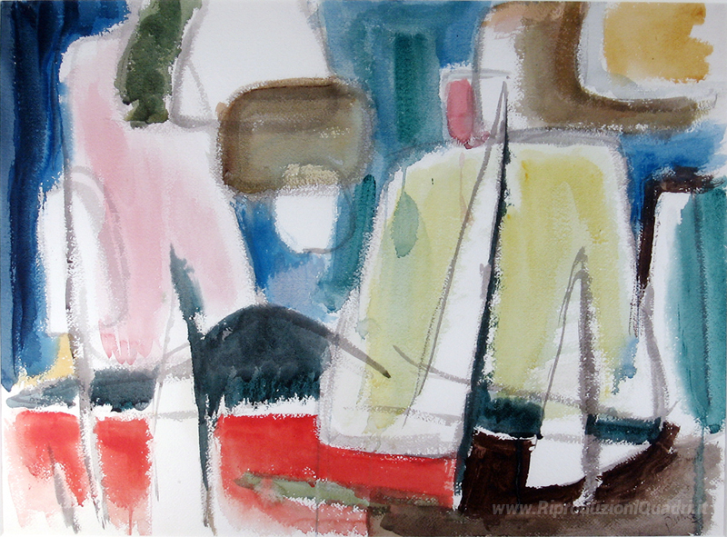 Ti offriamo una riproduzione artigianale su tela dell'opera famosa 'Barche a vela, Lake of Bays' di Jack Bush, dal Museo delle Riproduzioni.
