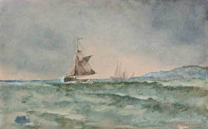 Ti offriamo una riproduzione artigianale su tela dell'opera famosa 'Barche a vela' di Ioannis Altamouras, dal Museo delle Riproduzioni.