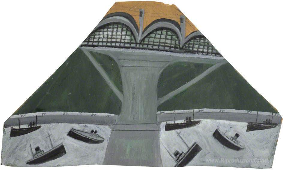 Ti offriamo una riproduzione artigianale su tela dell'opera famosa 'Barche sotto Saltash Bridge (Royal Albert Bridge)' di Alfred Wallis, dal Museo delle Riproduzioni.
