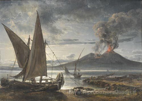 Ti offriamo una riproduzione artigianale su tela dell'opera famosa 'Barche sulla spiaggia vicino Napoli' di Johan Christian Dahl, dal Museo delle Riproduzioni.