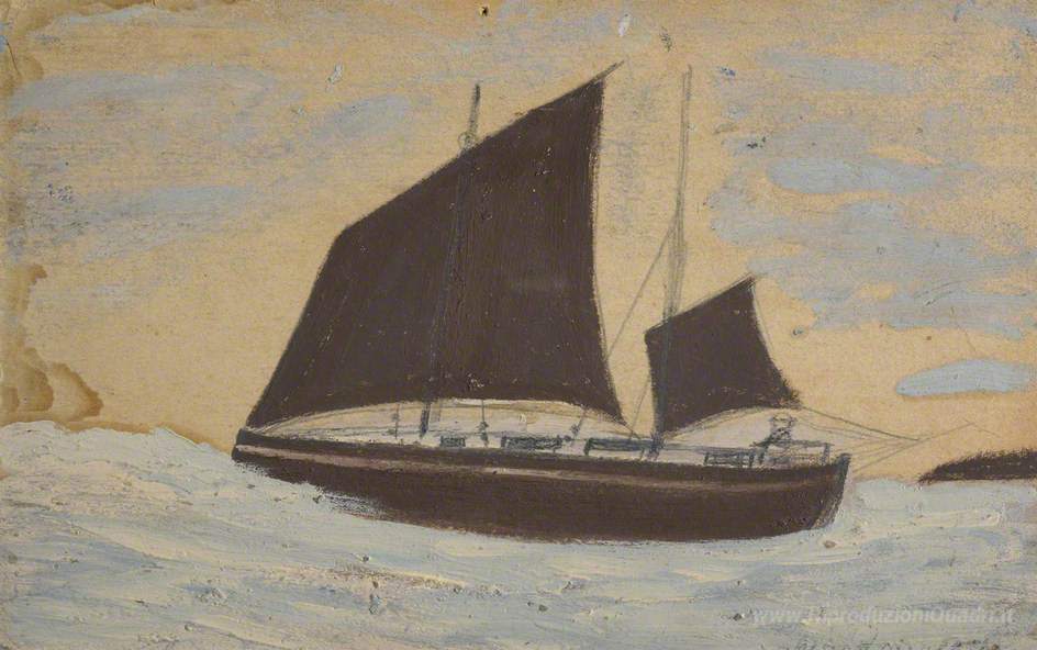 Ti offriamo una riproduzione artigianale su tela dell'opera famosa 'Brown Barca a vela' di Alfred Wallis, dal Museo delle Riproduzioni.