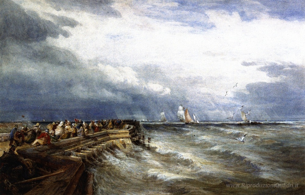 Ti offriamo una riproduzione artigianale su tela dell'opera famosa 'Calais Pier' di David Cox, dal Museo delle Riproduzioni.