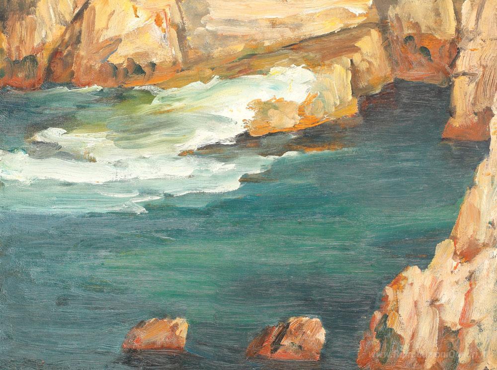 Ti offriamo una riproduzione artigianale su tela dell'opera famosa 'Cape Caliacra' di Stefan Popescu, dal Museo delle Riproduzioni.