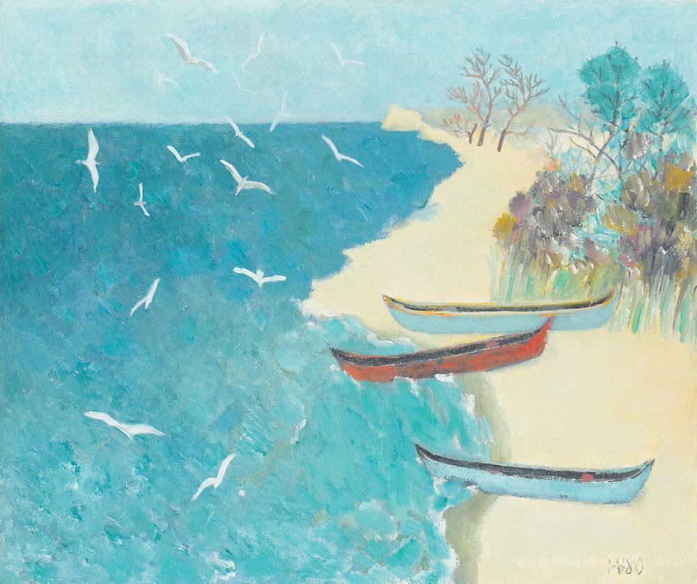 Benvenuti nella nostra esclusiva selezione di dipinti a olio italiani, dove ogni opera racconta una storia unica e affascinante. Immersi nella bellezza senza tempo e nella ricca tradizione artistica del nostro Paese, oggi vi presentiamo l'incantevole opera Chiatte sul puntello dell'artista Viorel Marginean. Con una padronanza tecnica straordinaria, Marginean cattura l'essenza della vita marinara, invitando lo spettatore a perdersi tra le onde e i colori vibranti del suo mondo.