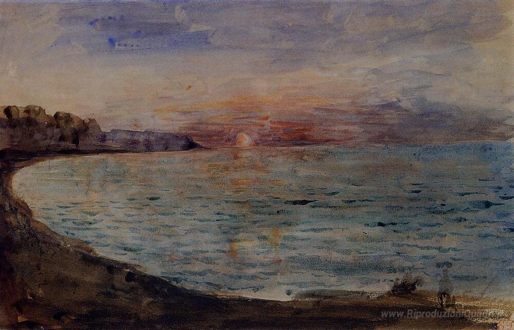 Ti offriamo una riproduzione artigianale su tela dell'opera famosa 'Cliffs vicino a Dieppe' di Eugene Delacroix, dal Museo delle Riproduzioni.