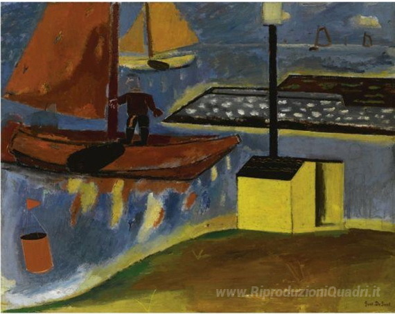 Ti offriamo una riproduzione artigianale su tela dell'opera famosa 'De Haven' di Gustave de Smet, dal Museo delle Riproduzioni.