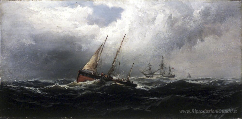 La scena rappresentata in Dopo un Gale - Wreckers non è solo una testimonianza della grande maestria dell'artista, ma anche un invito a vivere l'atmosfera tumultuosa e affascinante del mare. Questo dipinto, con i suoi turbinanti colori e le intricati dettagli, saprà esaltare gli spazi del vostro ambiente, rendendolo accogliente e affascinante. Scoprite l'arte di James Hamilton e lasciatevi trasportare in un mondo di emozioni e bellezza senza tempo.