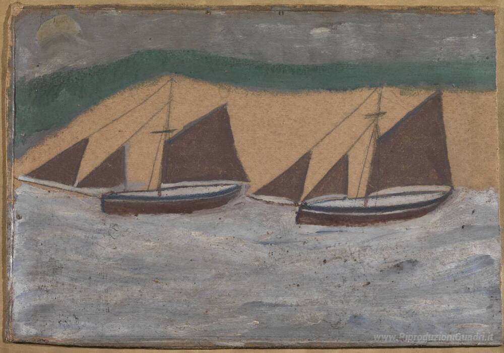 Ti offriamo una riproduzione artigianale su tela dell'opera famosa 'Due Barche' di Alfred Wallis, dal Museo delle Riproduzioni.