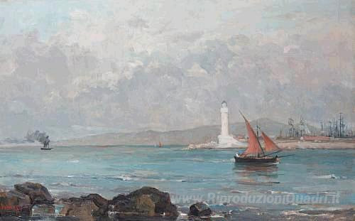 Ti offriamo una riproduzione artigianale su tela dell'opera famosa 'Faro di Marsiglia' di Pericles Pantazis , dal Museo delle Riproduzioni.
