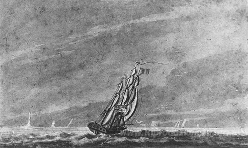 Ti offriamo una riproduzione artigianale su tela dell'opera famosa 'Full Sail fuori Sandy Hook L'ingresso al porto di New York' di Pavel Svinyin, dal Museo delle Riproduzioni.