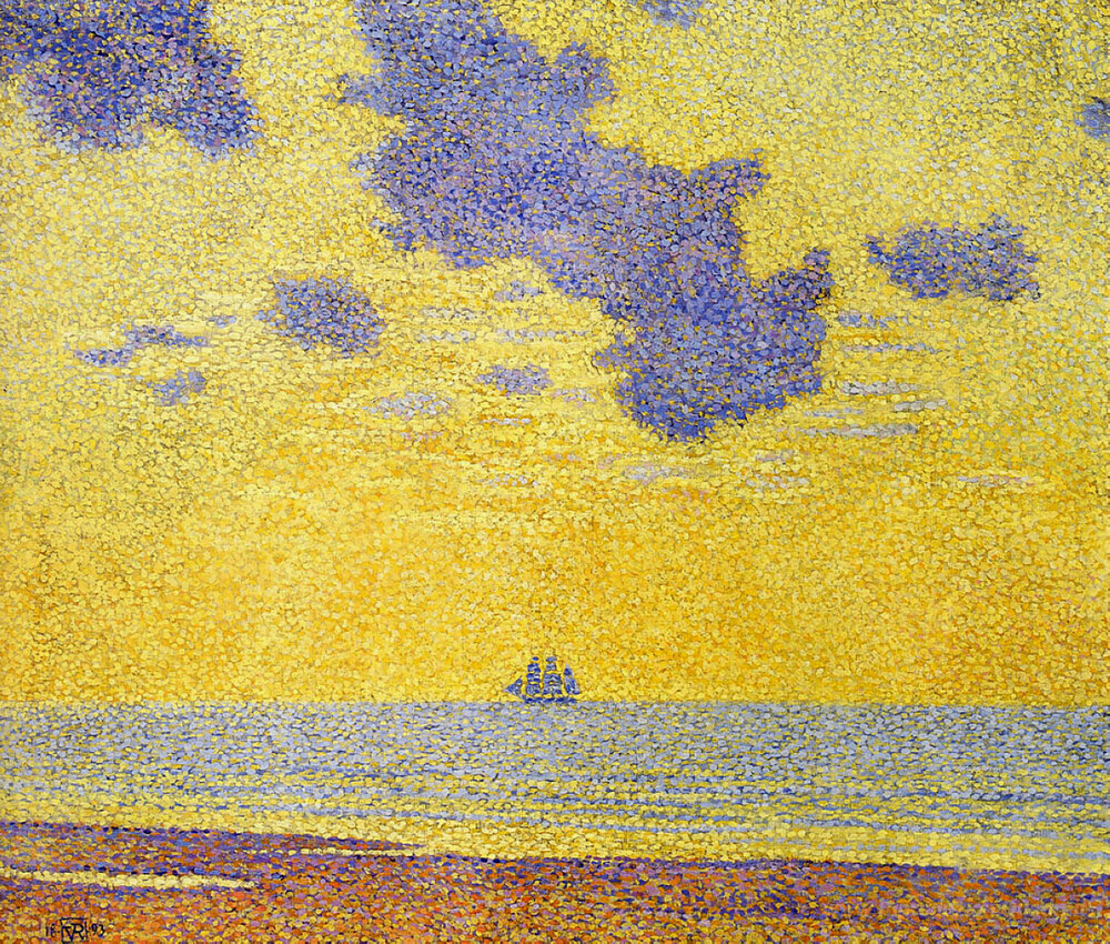 Ti offriamo una riproduzione artigianale su tela dell'opera famosa 'Grandi nubi' di Theo van Rysselberghe, dal Museo delle Riproduzioni.