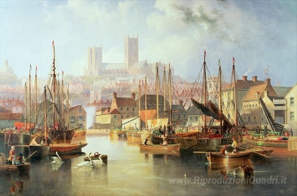 Ti offriamo una riproduzione artigianale su tela dell'opera famosa 'Il Brayford Pool e Lincoln Cathedral' di John Wilson Carmichael, dal Museo delle Riproduzioni.