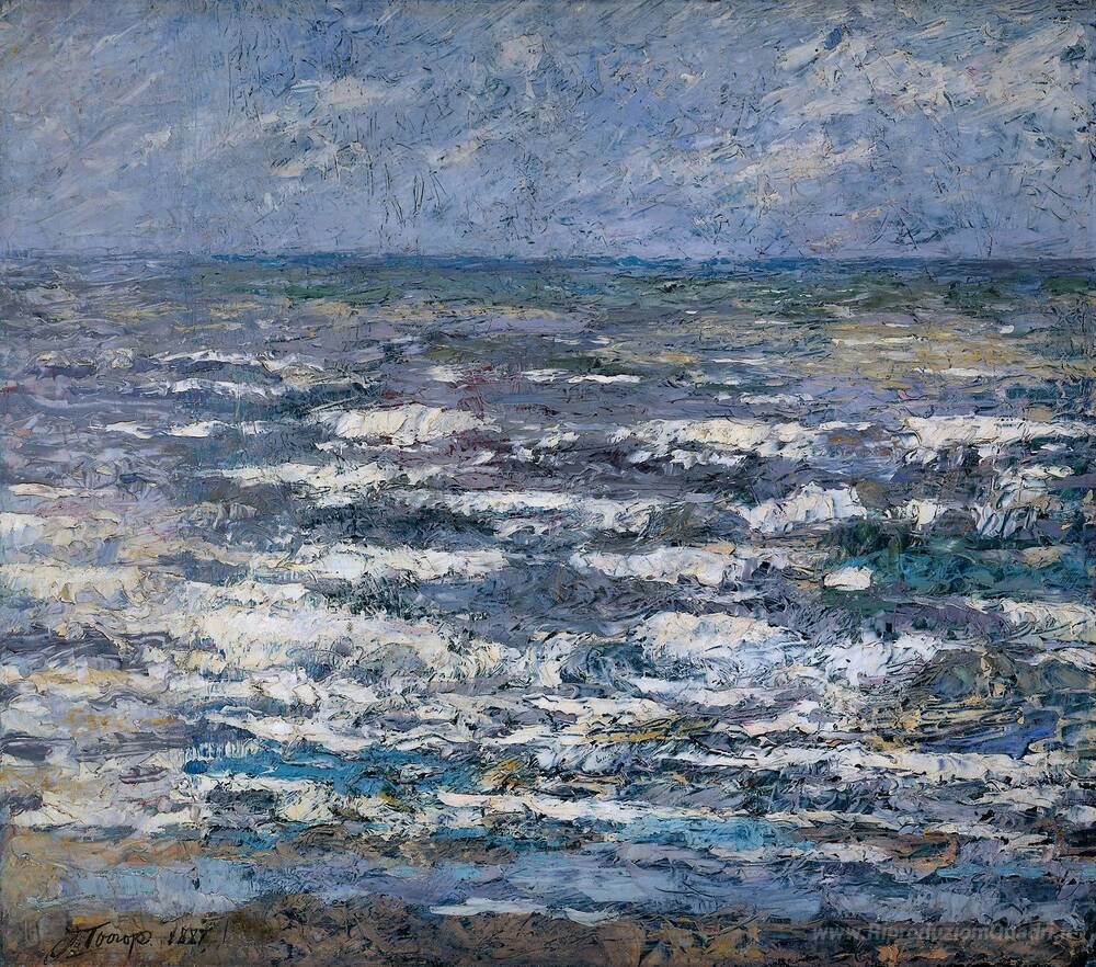 Ti offriamo una riproduzione artigianale su tela dell'opera famosa 'Il mare di Katwijk' di Jan Toorop, dal Museo delle Riproduzioni.