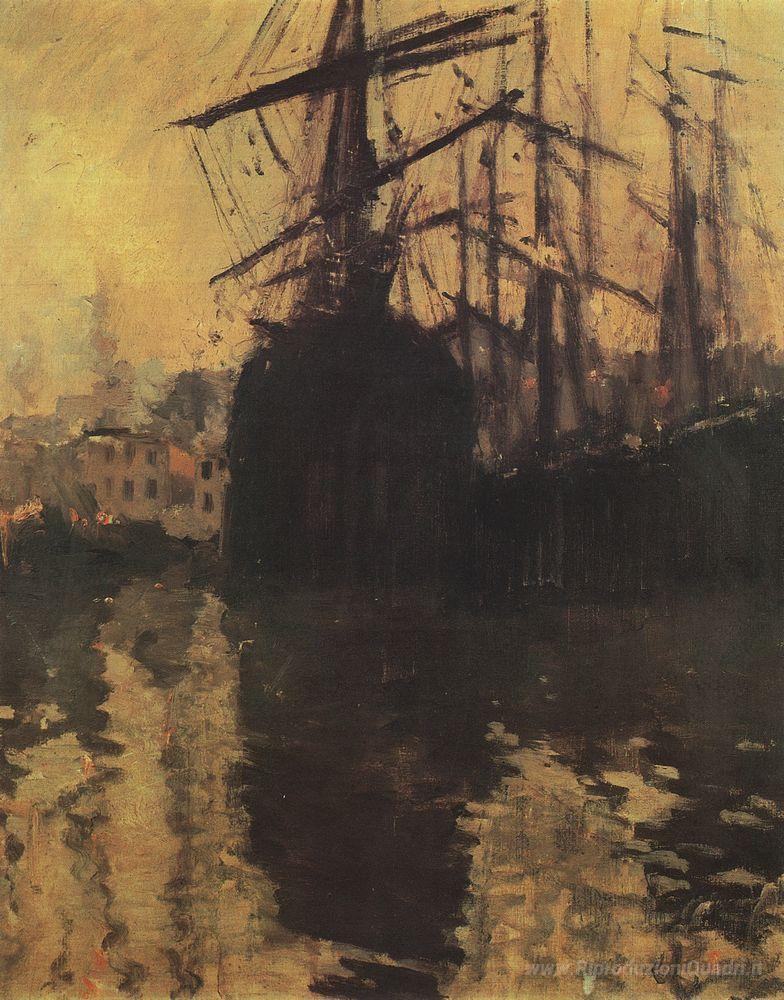 Ti offriamo una riproduzione artigianale su tela dell'opera famosa 'Il porto di Marsiglia' di Konstantin Korovin, dal Museo delle Riproduzioni.