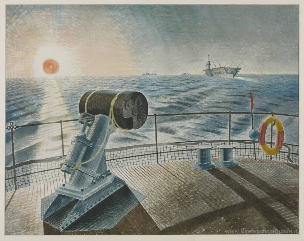 Ti offriamo una riproduzione artigianale su tela dell'opera famosa 'Il Sole di mezzanotte' di Eric Ravilious, dal Museo delle Riproduzioni.
