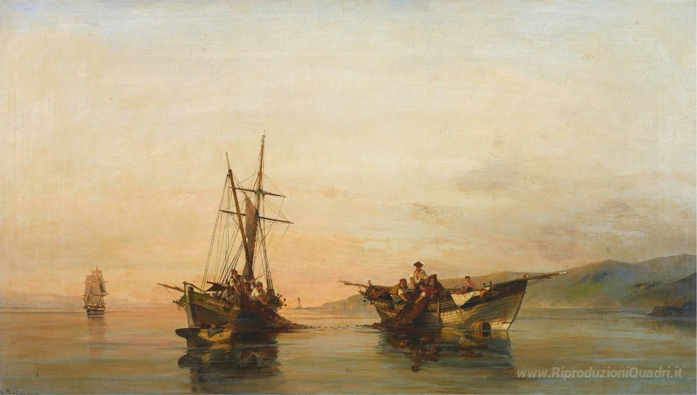 Ti offriamo una riproduzione artigianale su tela dell'opera famosa 'In acque calme' di Konstantinos Volanakis, dal Museo delle Riproduzioni.
