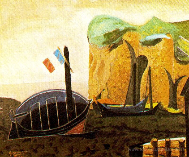 Ti offriamo una riproduzione artigianale su tela dell'opera famosa 'La barca della bandiera' di Georges Braque, dal Museo delle Riproduzioni.