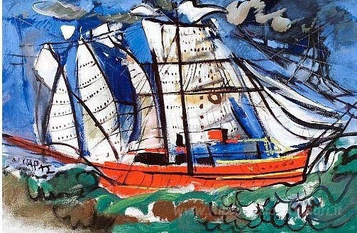 Ti offriamo una riproduzione artigianale su tela dell'opera famosa 'La barca rossa' di Dimitris Mytaras, dal Museo delle Riproduzioni.