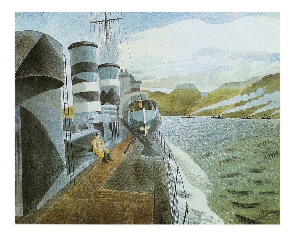 Ti offriamo una riproduzione artigianale su tela dell'opera famosa 'Lasciando Scapa Flow' di Eric Ravilious, dal Museo delle Riproduzioni.