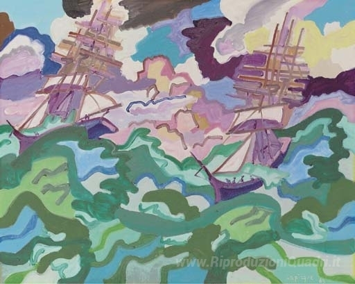 Ti offriamo una riproduzione artigianale su tela dell'opera famosa 'Les Cap-Horniers' di Charles Lapicque, dal Museo delle Riproduzioni.