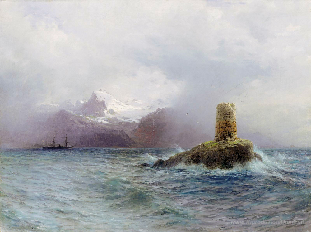 Ti offriamo una riproduzione artigianale su tela dell'opera famosa 'Lofoten Island' di Lev Lagorio, dal Museo delle Riproduzioni.