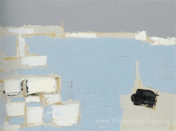 Ti offriamo una riproduzione artigianale su tela dell'opera famosa 'Marsiglia sotto la neve' di Nicolas de Staël, dal Museo delle Riproduzioni.