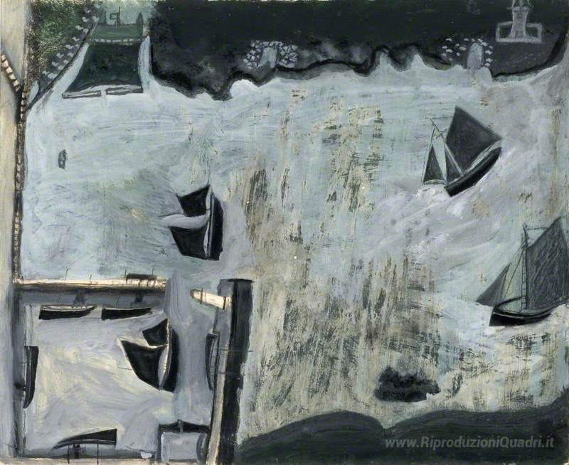 Ti offriamo una riproduzione artigianale su tela dell'opera famosa 'Monte Porto San Michele' di Alfred Wallis, dal Museo delle Riproduzioni.