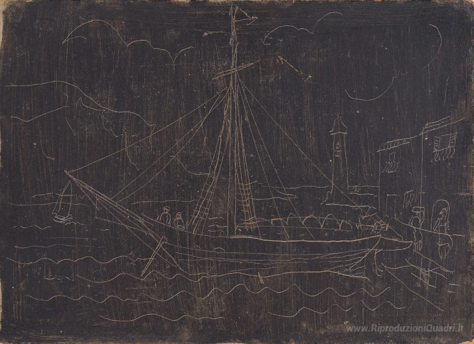 Ti offriamo una riproduzione artigianale su tela dell'opera famosa 'Nave nel porto' di Christopher Wood, dal Museo delle Riproduzioni.