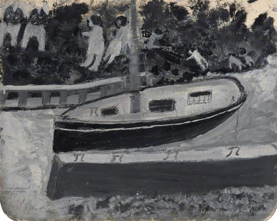 Ti offriamo una riproduzione artigianale su tela dell'opera famosa 'Nave, persone e animali' di Alfred Wallis, dal Museo delle Riproduzioni.