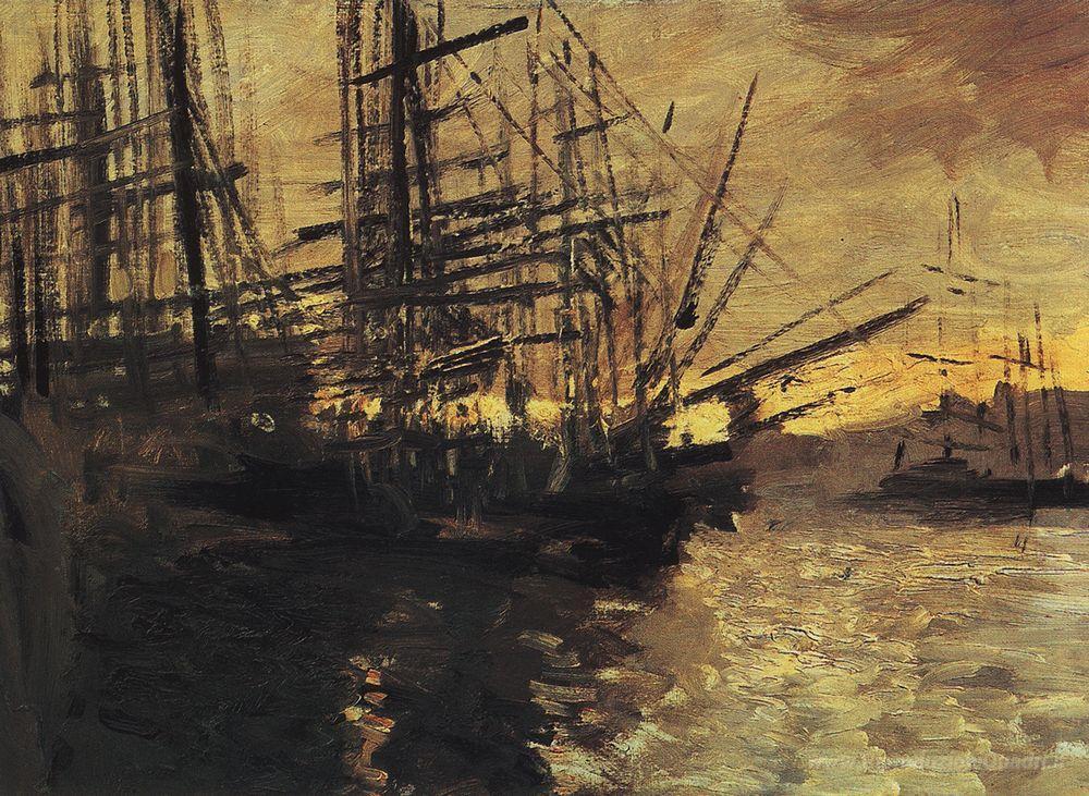 Ti offriamo una riproduzione artigianale su tela dell'opera famosa 'Navi in ??Marsiglia Port' di Konstantin Korovin, dal Museo delle Riproduzioni.